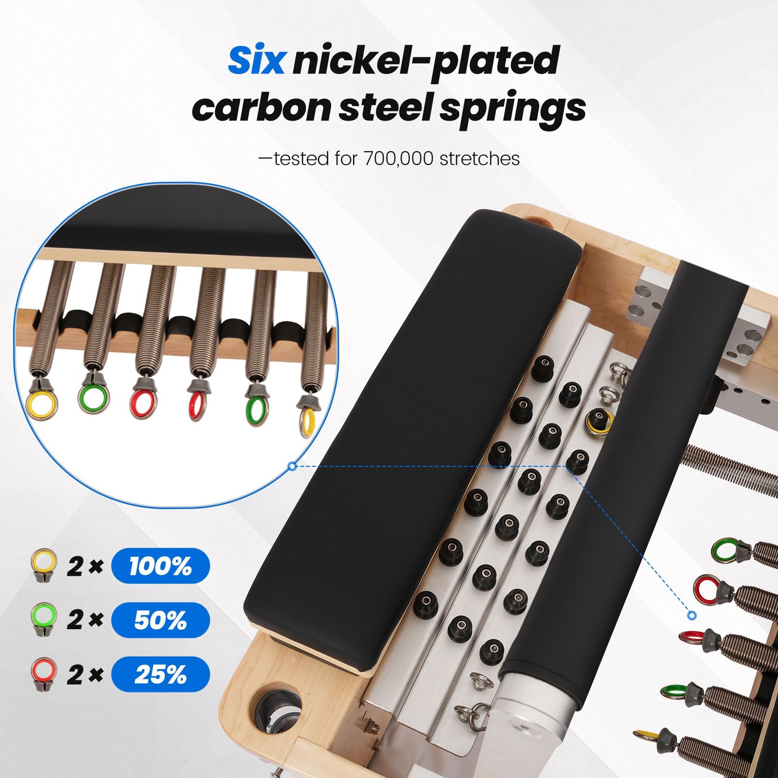 ✔ Seis niquelados Muelles de acero al carbono